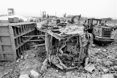 6月21日,一輛被炸毀的大卡車倒在現場。當日下午,記者從安徽省鳳陽縣“6·21爆炸事故處理指揮部”了解到,初步認定,21日凌晨3時17分發生在鳳陽縣晶鑫礦業有限公司的爆炸事故,是企業法人私藏炸藥所致。事故目前已造成16人死亡、43人受傷。
