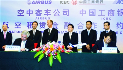 6月22日,空中客車公司與中國工商銀行在天津簽署航空租賃與融資業務合作諒解備忘錄。根據備忘錄,工銀金融租賃有限公司將根據市場需求,從空中客車公司購買空客飛機。工商銀行也將為航空公司購買空中客車飛機提供飛機交付融資解決方案。今后5年時間里,工商銀行將為接收空客天津總裝線組裝飛機的航空公司提供總金額達200億元人民幣的意向性租賃支持,可以幫助這些航空公司順利接收70架空客A320系列飛機。