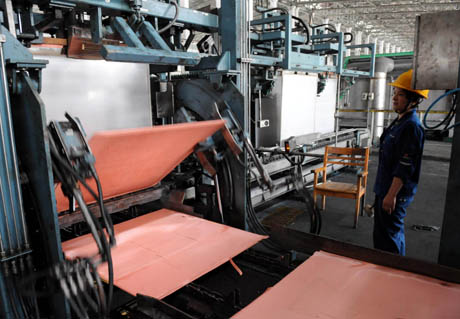 6月25日,江西銅業集團貴溪冶煉廠工人在電解車間生產陰極銅。 地處偏遠山區,依靠貸款起步,資源和技術又受制于人,這樣的企業能否在激烈的國際競爭中肩負起振興國家銅業的歷史使命?偏居贛東北山區的江西銅業集團公司不辱使命,給出了肯定的回答。30年來,江銅逐漸成長為中國銅工業的“領頭羊”,現已擁有年產90萬噸銅的綜合生產能力,躋身世界銅工業前三強。