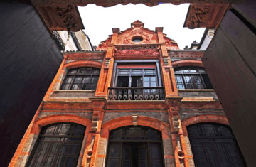 浙江南潯建鎮于1252年,早在明萬歷年間就以“耕桑之富、甲于浙右”的江浙雄鎮而聞名全國。清末民初年間,許多南潯商人經商致富后紛紛返鄉置業,在南潯興建眾多將中國傳統民居布局與西方古典建筑樣式融為一體的宅第園林,使這座江南古鎮成為一座獨具近代歷史特征的中西建筑文化博物館。目前,南潯嘉業堂藏書樓、小蓮莊以及有“江南第一巨宅”之稱的張氏舊宅建筑群都已被列為全國重點文物保護單位,該鎮還被聯合國教科文組織列入聯合國世界文化遺產預備清單。 這是南潯古鎮張氏舊宅建筑群大宅門內一幢具有歐洲建筑風格的樓房。