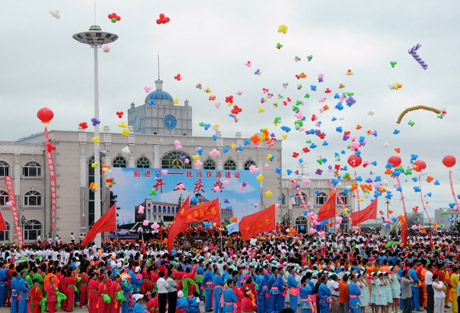 20日上午,前(進)撫(遠)鐵路開工慶典儀式在黑龍江省撫遠縣舉行。前撫鐵路正線全長169公里,將于2010年10月建成并通車運營,從此結束“中國東極”撫遠縣不通鐵路的歷史。