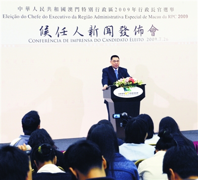 7月26日,澳門特區第三任行政長官候任人崔世安會見媒體。