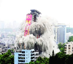 廣東中山爆破拆除104.1米高“爛尾樓”