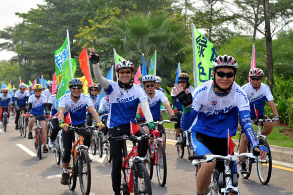 9月22日,?谑薪400名自行車愛好者和市民進行自行車巡游活動。 當日是第三個“中國城市無車日”,今年“無車日”的主題是“健康環保的步行和自行車交通”,全國各地開展了自行車巡游、主題展板宣傳、市民簽名等多種形式的活動宣傳綠色出行。