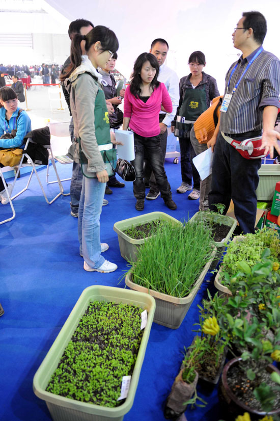 在日前舉行的第十屆中國西部國際博覽會上,觀眾觀看箱式“迷你開心農場”。