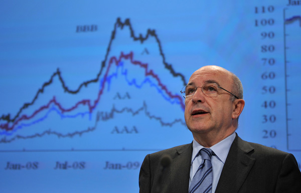 11月3日,歐盟委員會負責經濟和貨幣事務的委員華金·阿爾穆尼亞在位于比利時首都布魯塞爾的歐盟總部舉行記者招待會,公布歐盟委員會今年秋季的宏觀經濟預測數據。據預測,歐盟和歐元區經濟今年分別為4.1%和4%的負增長,2010年有望走出衰退,歐盟和歐元區經濟將分別增長0.7%,2011年將分別增長1.6%和1.5%。