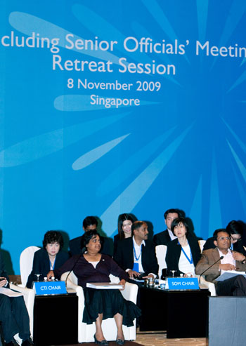11月8日,亞太經合組織各成員代表出席亞太經合組織高官會議。亞太經合組織高官會議當日開始在新加坡舉行,拉開了亞太經合組織領導人會議周的帷幕。應對國際金融危機、反對貿易保護主義、推動多哈回合談判及加強區域經濟合作等預期將是重要議題。