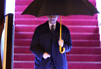 11月15日晚,美國總統奧巴馬乘“空軍一號”專機抵達上海。 新華社記者張明攝