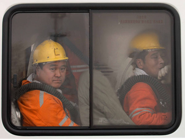 11月22日,一批救援人員在車內待命。 記者從黑龍江省鶴崗新興煤礦事故搶險救災指揮部獲悉,經過夜以繼日的搶險救災,新興煤礦井下通風系統已全部恢復,使救援工作大幅提速。 截至發稿時,搜救人員共發現92名遇難者,仍有16人下落不明。