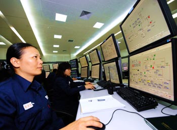 福建煉油乙烯一體化項目中控室的技術人員正在工作。照片均由本報記者 張國俊