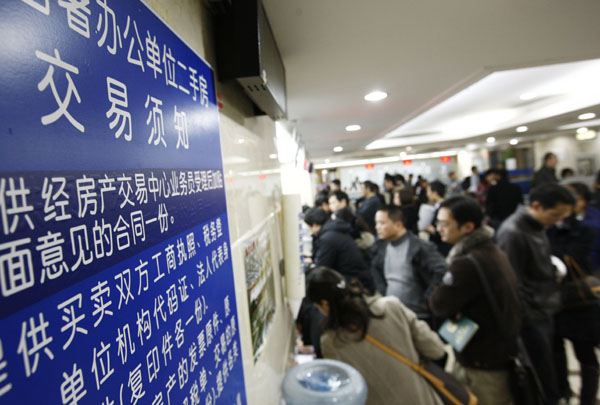 12月10日,上海徐匯區房地產交易中心交易大廳內人頭攢動。 隨著二手房營業稅優惠政策即將到期,上海各區縣房地產交易中心交易量明顯增加。12月9日,國務院常務會議決定個人住房轉讓營業稅征免時限由2年恢復到5年,買賣雙方為了節省“2變5”之后多花的5.5%的稅費成本,紛紛趕在年底之前完成交易。