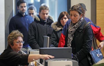3月6日,在冰島雷克雅未克的一個投票站,人們排隊等待投票。冰島官方初步統計數據顯示,6日舉行的全民公決否決了賠償英國和荷蘭儲戶損失的議案。新華社/路透