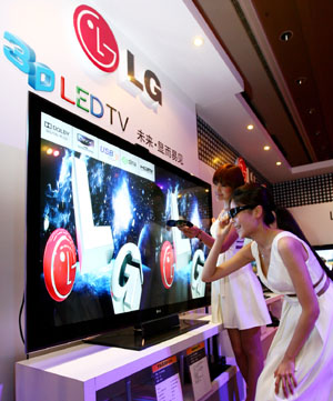 4月6日,LG在北京一舉推出了包括電視機、冰箱、洗衣機、空調等在內的全線新品。其中,最具代表性、也是最受矚目的當數LG首次亮相的Full LED 3D電視——LX9500和72寸的LEX9。 據了解,LEX9是目前全球最大的3D電視,達到72英寸,而另一款55英寸的LX9500的邊框寬度還不到1厘米,機身厚度也僅為2.33厘米,掛在墻上更強化了“壁畫感”。由于LEX9和LX9500都采用了Full LED技術,極大提高畫面對比度和亮度,使得暗黑更黑,鮮亮更亮,層次分明。 圖為LG全球最大的3D電視LEX9。 |
