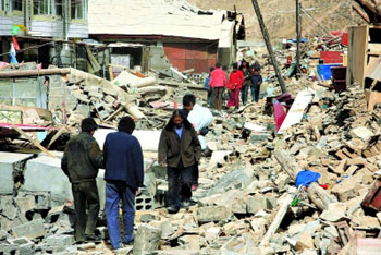 青海玉樹地震災區受災嚴重,結古鎮土木結構的房屋幾乎全部倒塌。新華社記者 任曉剛/攝