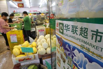 6月28日,市民在上海徐匯區的一家華聯超市內選購商品。近日,上海兩大超市品牌“聯華超市”和“華聯超市”完成重組整合,躍居中國最大的連鎖標準化超市企業。聯華、華聯將于今年7月10日起合署辦公。據介紹,整合后新聯華門店規模將突破3500家,銷售規模近500億元。