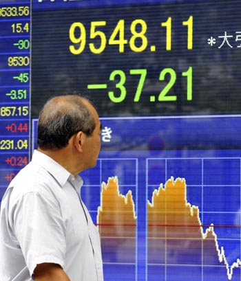 7月12日,路人行經日本首都東京街頭的日經股指顯示牌,東京股市日經225種股票平均價格指數下跌0.39%。新華社/法新 |