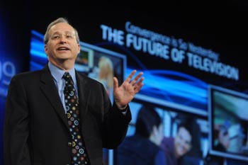 得益于摩爾定律、微處理器技術和互聯網的發展,電視正在朝向智能化數據中心的方向發展。正如英特爾的首席技術官賈斯汀所說的那樣,電視的革新也許會讓你感到意外:在不久的將來,你可以對著電視機“說話”,告訴它你想看什么,而不論你想看的東西是來自有線電視臺、互聯網電視提供商,還是你自己的私人視頻庫,電視都能馬上為你提供服務;你還可以通過一個3D電視界面瀏覽視頻節目列表,舉手之勞,輕松預覽正在播放的節目并決定看哪個頻道。