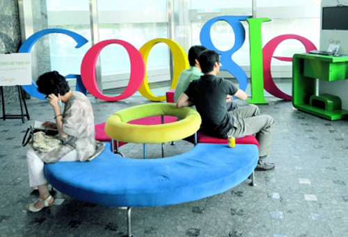 8月11日,在韓國首都首爾,來訪者坐在谷歌韓國的辦公室大堂內。 韓國警方10日對涉嫌收集個人信息的谷歌韓國的辦公室進行了搜查,獲取了硬盤文件等材料。警方有關人士表示:“谷歌韓國在制作‘街景’程序的過程中,非法收集個人信息,涉嫌違背通信秘密保護法,所以申請了搜查證,獲準進行了搜查!惫雀桧n國的代表當天就警方的搜查行動向韓國媒體表示:“從未非法使用收集到的個人信息!