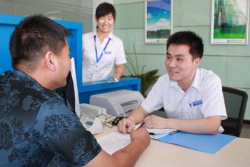 7月6日上午,蕪湖首家村鎮銀行——繁昌建信村鎮銀行正式對外營業,這也是中國建設銀行在安徽省投資成立的第一家村鎮銀行。據悉,它是由中國建設銀行作為主發起人和控股股東,繁昌縣數家民企以及自然人參股成立的一家新型農村金融機構,主要為當地農民、農業和農村經濟以及中小企業、個體工商戶提供金融服務。新華社發(楊華/攝) |