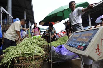 成都市中心農產品批發市場內,批發商正在賣菜。 |