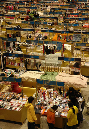 記者在大唐輕紡襪業城看到,這里簡直就是一個襪子的海洋,1000余間營業房和500多個展位集中經營著輕紡原料、襪子、襪機、各種配件以及物流,成為了國內外襪業原料和襪機制造商最重要的銷售基地和信息中心,美國杜邦、德國拜耳、日本伊藤忠等近20多家世界500強企業在大唐設立了銷售代理機構。
