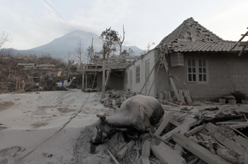在印度尼西亞默拉皮火山附近,落滿火山灰的村莊。新華社/路透