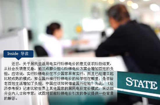 編者按:近日,關于居民生活用電實行階梯電價的意見征求階段結束,從社會反饋意見看,逾三成群眾擔心階梯電價方案會增加百姓的負擔。應該說,實行階梯電價在不少國家早有實行,而且已經建立起比較成熟的模式,那么國外推行階梯電價的科學性在哪里、是否給老百姓生活增加了負擔、中國應該如何借鑒國外經驗?為此,《經濟參考報》記者比較世界上其他國家的居民電價定價模式,采訪部分業內人士和專家,試圖對目前階梯電價引發的爭議提供一些背景的解答。