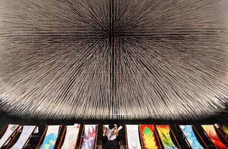 10月28日,游客在世博園英國館的裝有種子的亞克力“觸須”前休息。 當日,承載了6萬多顆“種子”的上海世博會英國館“觸須”正式開始在網上拍賣,所得款項將全部用于慈善事業。據悉,英國館將于11月1日正式拆館。