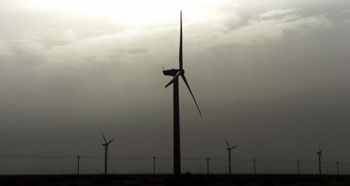 晚霞中的瓜州縣中電國際公司風電場。本報記者 連振祥