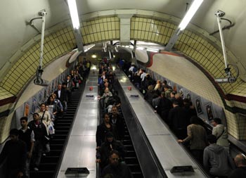 10月2日,在英國首都倫敦的一個地鐵站內,人們乘坐電梯。新華社記者 曾毅/攝 |