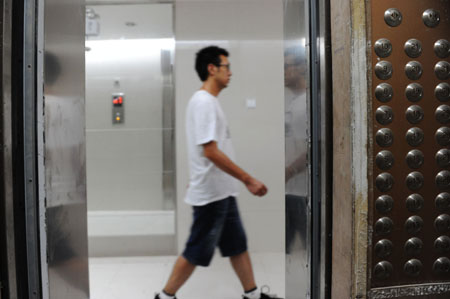 這是在淮南市朝陽帝堡小區拍攝的涉及收取電梯更新費的一部電梯。在國家明確規定小區電梯更新費由住宅專項維修基金支出的情況下,安徽淮南出臺地方法規,要求當地所有房產開發企業在售房前必須繳納每部25萬元的“首次電梯更新費”,不交錢不發房屋預售許可證。地方立法在淮南成了地方政府部門違規強制收費的依據。立法何以淪為部門利益的“保護傘”?誰來監督地方立法權的使用?