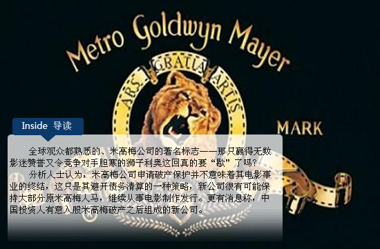 由于無法償付高達40億美元的巨額債務,曾是全球最大電影公司的米高梅11月3日宣布申請破產保護,其申請也隨即獲得法院的批準。全球觀眾都熟悉的、米高梅公司的著名標志——那只贏得無數影迷贊譽又令競爭對手膽寒的獅子利奧這回真的要“歇”了嗎?