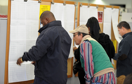11月9日,在美國城市拉斯韋加斯,當地居民在一個職業介紹中心里查看招聘信息。 據報道,美國勞工部上周的數據顯示,美國10月份凈增就業人數超過15萬人,超過一些經濟學家的預期。但美國眼下的失業率仍接近10%。
