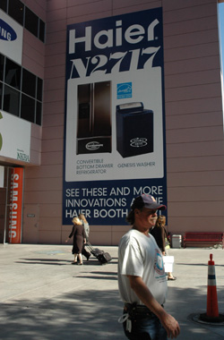 美國拉斯維加斯會展中心的巨幅海爾廣告。新華社發 |