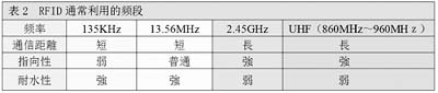 為避免各國無線電頻率使用標準不一,國際上大多遵守國際電信聯合會(ITU)的規范。目前,RFID使用的頻段有135KHz、13.56MHz、433.92MHz、860M~960MHz(UHF)、2.45GHz以及5.8GHz等6種。(RFID通常利用的頻率參照表2)