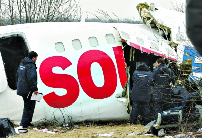 12月5日,工作人員在俄羅斯莫斯科多莫杰多沃機場的“圖-154”客機緊急迫降現場展開調查。 俄羅斯航空署署長涅拉季科4日在多莫杰多沃機場說,當天因機械故障在該機場緊急迫降的“圖-154”客機降落后撞上一座小山丘,斷裂成3截。俄衛生和社會發展部說,事故共導致2人死亡,80多人受傷,部分人員傷勢嚴重。