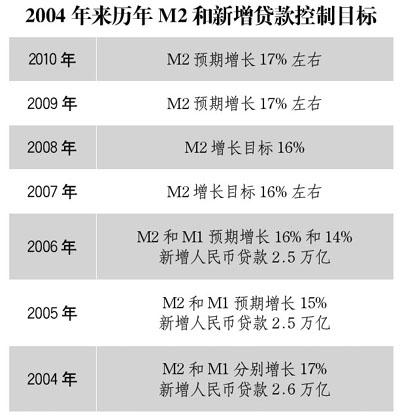 亦有媒體稱,2011年廣義貨幣供應量M2增速目標將在16%左右;金融機構新增貸款目標規?赡転7.5萬億左右,但這一目標規模目前尚未最終確定。