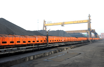圖為江蘇連云港一家火力發電廠的煤炭儲備場運輸系統。新華社發(耿玉和/攝) |