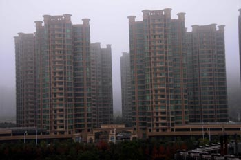迷霧中的臺州某樓盤。新華社記者 王俊祿/攝 |