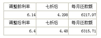 中國人民銀行決定,自2010年12月26日起上調金融機構人民幣存貸款基準利率。金融機構一年期存款基準利率上調0.25個百分點,其他各檔次存貸款基準利率相應調整。 房貸利率(五年期以上貸款利率)上調至6.40%。房奴們影響幾何?理財師為大家算了一筆賬,以100萬元20年首套房貸款計算,在等額本息償還方式下,每月貸款額變化如下: