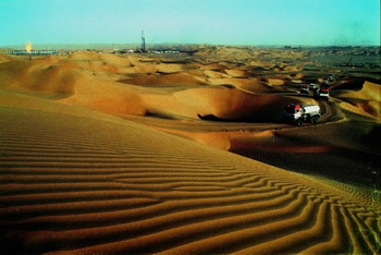 為保障沙漠勘探開發人員、物資運輸和沙漠緊急救援,1986年12月9日,南疆石油勘探公司與中國通用和新疆通用航空公司簽訂航空服務合同,租用“運-12”“運-5”等飛機進行沙漠空中運輸服務,并于1987年8月在塔克拉瑪干沙漠腹地開始修建第一條沙漠機場鋼板跑道,跑道長600米、寬20米,1988年11月17日試航成功。隨著沙漠公路建成通車,機場也逐漸廢棄。