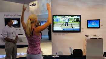 據介紹,該產品采用業內領先的表面光波技術,并結合海爾獨有的技術,同時,海爾智能電視還搭載了全球最領先的手勢控制系統,只需連接一個攝像頭,用戶就可以通過手勢實現電視圖片、視頻、音頻、游戲等功能的切換。更為神奇的是,該電視還內置了多款應用游戲,用戶可通過手勢及身體姿勢操控體感游戲,真正實現了用戶與電視的實時互動。