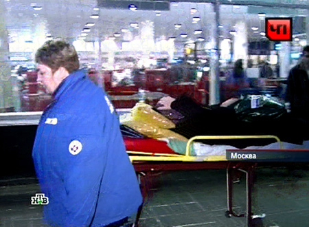 據俄媒體報道,當地時間1月24日16時32分(北京時間21時32分),俄羅斯首都莫斯科多莫杰多沃機場抵達大廳內發生爆炸。 至本報截稿時,俄塔社的報道說,莫斯科多莫杰多沃機場24日發生的爆炸已造成31人死亡,另有上百人受傷。 據俄塔社報道,俄羅斯總統梅德韋杰夫24日說,多莫杰多沃機場爆炸是恐怖襲擊。 圖為俄羅斯NTV電視臺視頻截圖顯示在莫斯科多莫杰多沃機場,醫護人員在運送爆炸中的受傷人員。