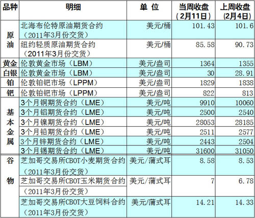 國際大宗商品期貨價格明細表