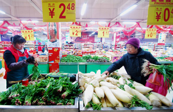 2月15日,市民在江西九江的一家超市選購蔬菜。新華社發(胡國林攝) |