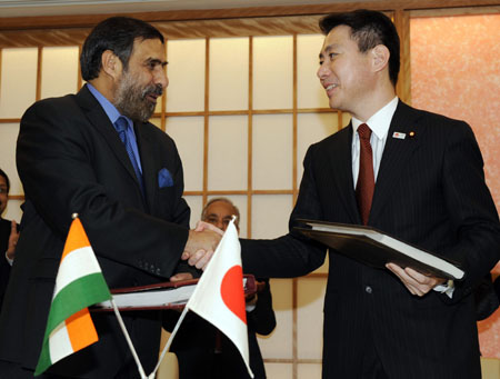 日本外務大臣前原誠司與到訪的印度商業和工業部長阿南德·夏爾馬分別代表兩國政府簽署了協定。兩國政要用“美妙”、“具有歷史性”等詞句評價此次簽署的協議。前原表示,希望以此為契機,使兩國的戰略伙伴關系得到進一步發展。夏爾馬表示,正處于快速增長期的印度期待日本企業的進駐。
