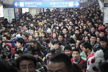 2月17日,從下午五點四十開始,北京地鐵前門站的客流量達到每十五分鐘7500人,已達到該站最高通行能力。馬馺