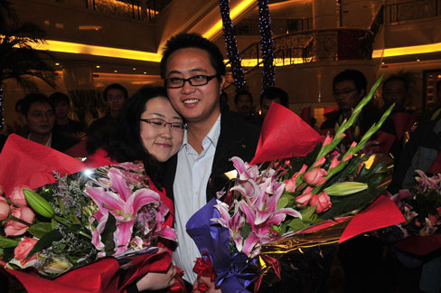 北京時間23日22點50分,包括22名中國石油天然氣管道局員工在內的首批撤離利比亞中國公民安全回國。圖為石油管道員工胡浩和赴機場迎接他的妻子緊緊相擁。