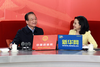 2月27日上午,中共中央政治局常委、國務院總理溫家寶接受中國政府網、新華網聯合專訪,與廣大網友在線交流。新華社記者