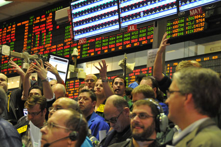 2月28日,工作人員在美國芝加哥商品交易所農產品交易池忙碌。 芝加哥玉米期貨價格受到供給收緊預期的支撐,2月28日繼續上漲,同時小麥市場也因美國、俄羅斯的不利天氣而繼續走高。但是大豆價格卻受到南美地區收成好于預期的影響,開始走弱。玉米市場交投最活躍的5月合約收于每蒲式耳7.31美元,上漲9美分,漲幅為1.25%。小麥5月合約漲5.75美分,收于每蒲式耳8.17美元,漲幅為0.7%。大豆5月合約下跌10.25美分,收于每蒲式耳13.6475美元,跌幅為0.75%。新華社發